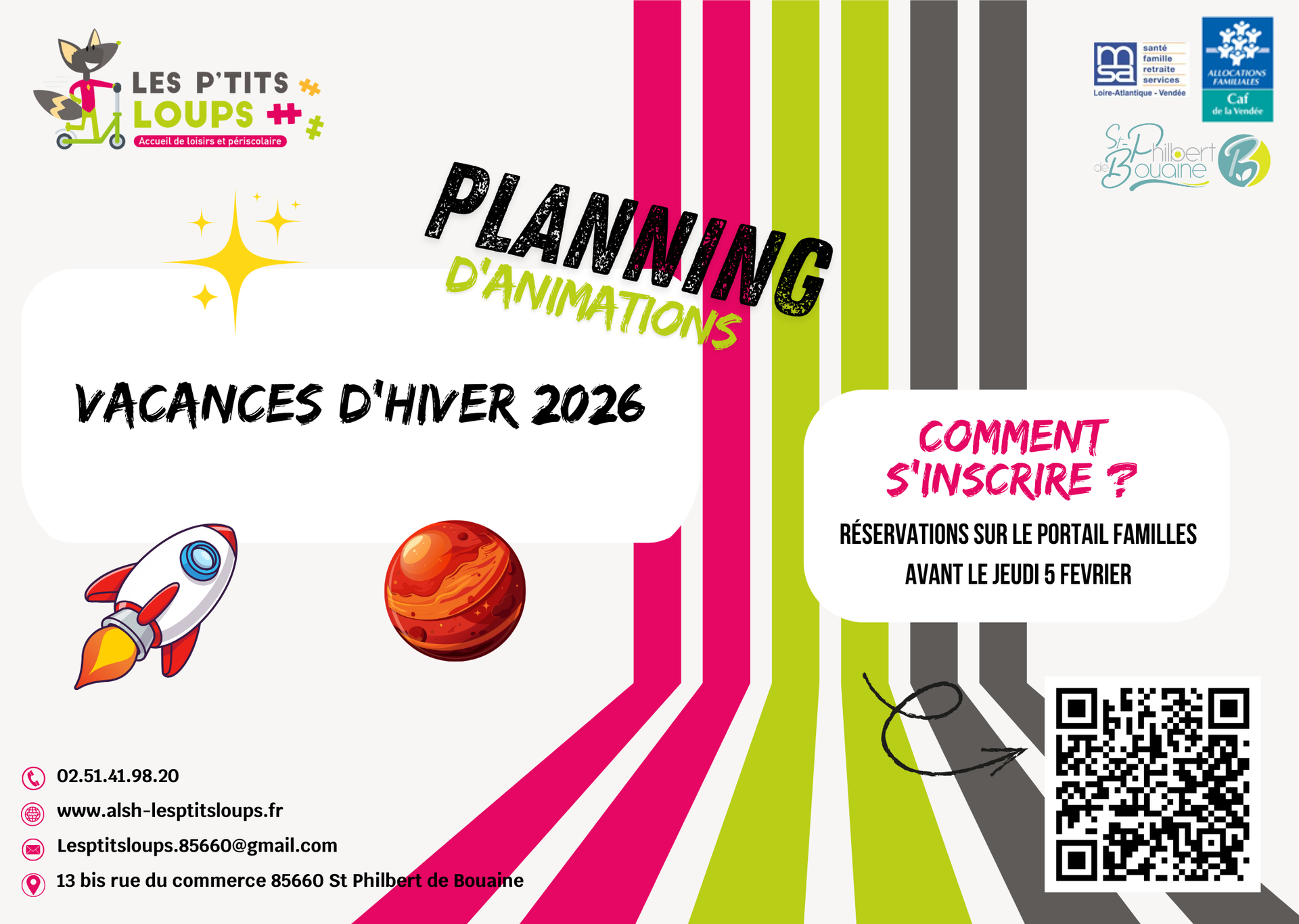 l'accueil de loisirs et le périscolaire change d'adresse mail : lesptitsloups.85660@gmail.com