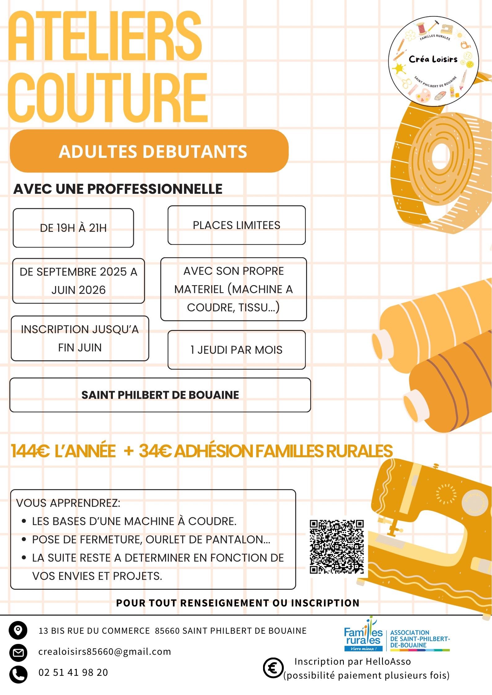 Créa Loisirs vous propose pour la rentrée de septembre 3 ateliers de couture.